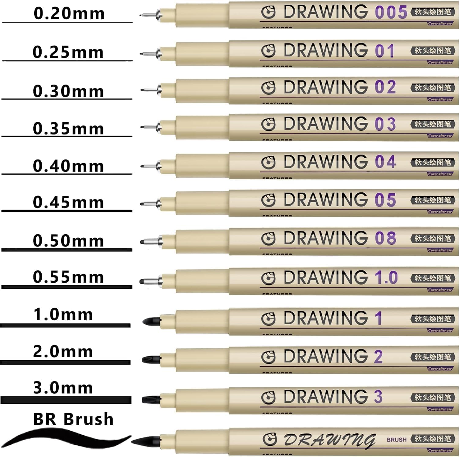 Fine liner tips: 0.2mm (005), 0.25mm (01), 0.35mm (03), 0.45mm (05), 0.50mm (08), 0.55mm (10)